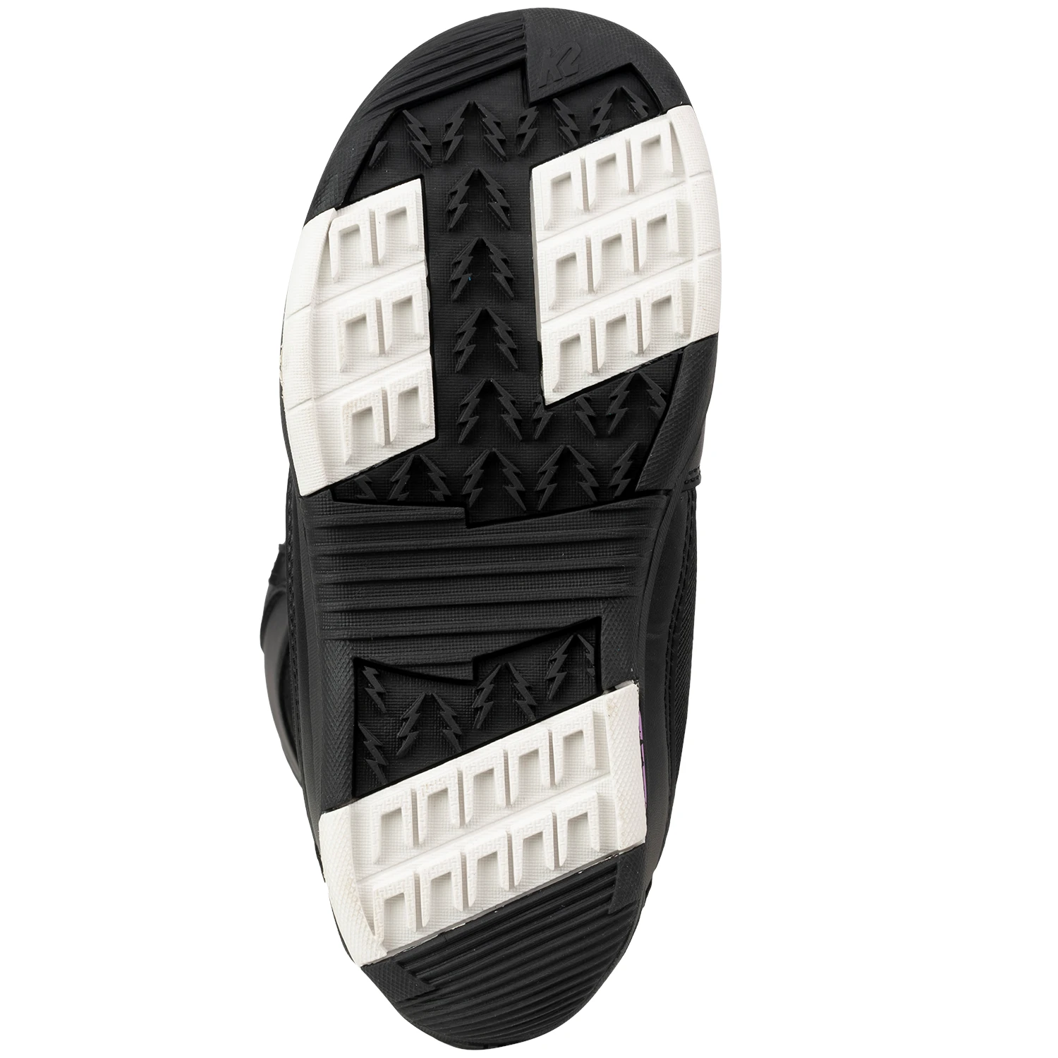 A cable and reel based lacing system that creates even tension and easy lacing operation. This system features low friction guides for even tightening. Boa® works to automatically retract lace slack so your boots stay nice and neat.