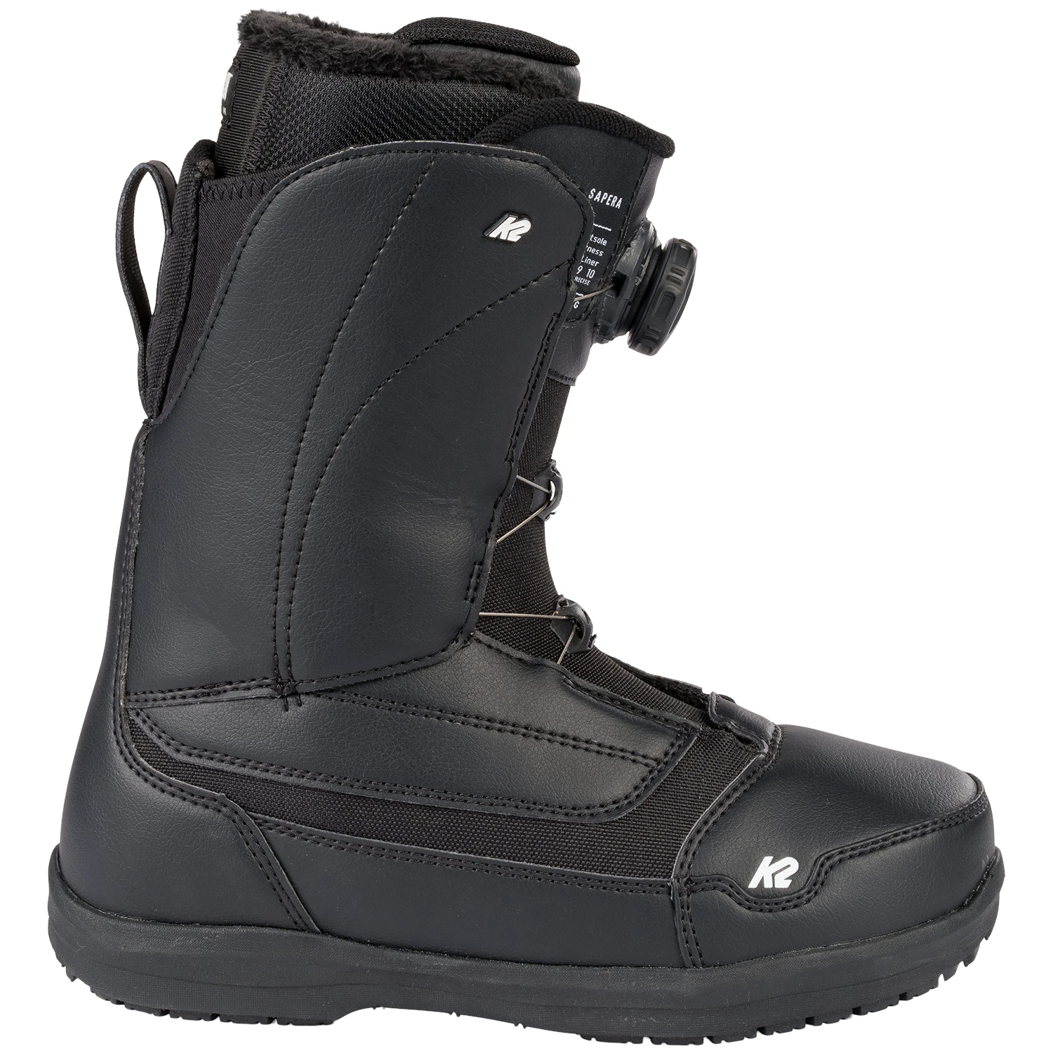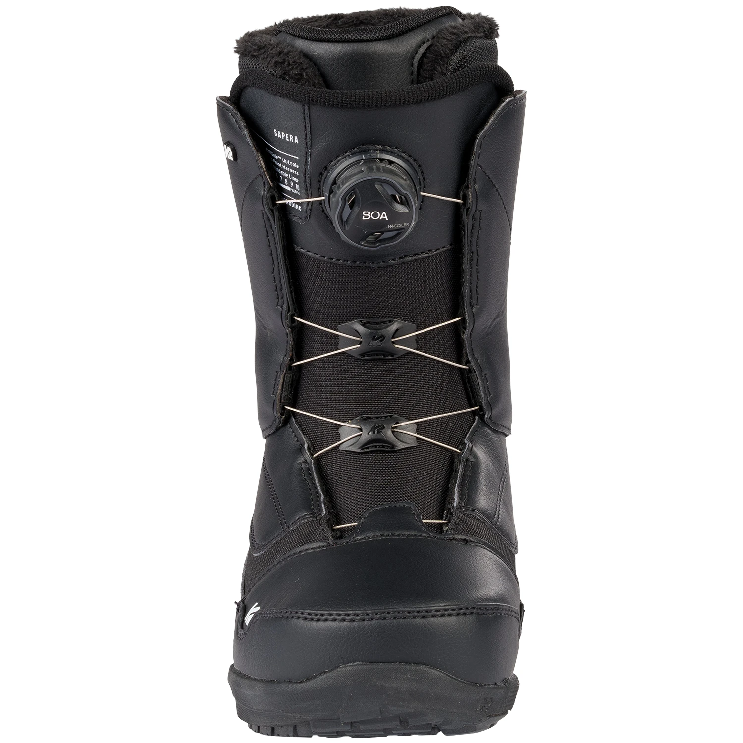 A cable and reel based lacing system that creates even tension and easy lacing operation. This system features low friction guides for even tightening. Boa® works to automatically retract lace slack so your boots stay nice and neat.